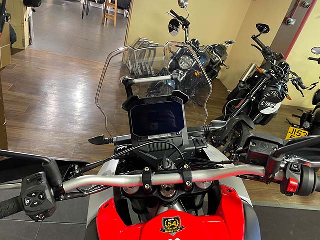 Four Riding Modes, two of which are customisable (one dedicated to off-road riding). ABS can be deactivated at both wheels or only the rear. APRC system complete with Traction Control, Cruise Control, Engine Map and Engine Brake. All accessible via the high-visibility 5″ TFT screen.