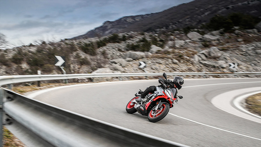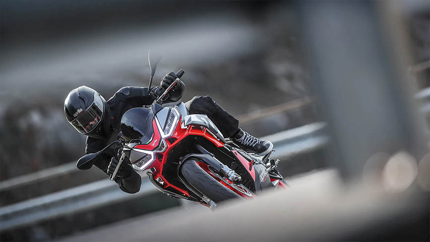 Like the RS 660, the Aprilia Tuono 660 boasts an incredible weight to power ratio. Its wet weight of just 183 kg for 95 HP is a record-breaker in its category and makes for an accessible naked sport bike suitable for any rider both on the road and track.
