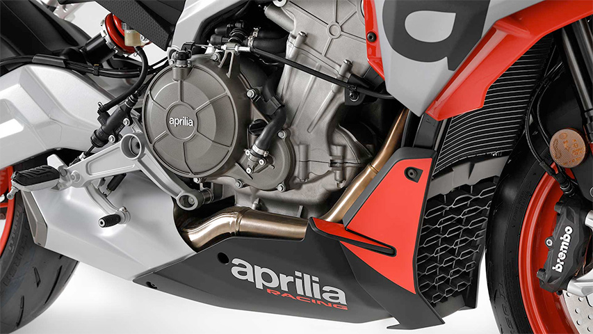 | Engine | Aprilia forward-facing parallel twin, four stroke, liquid-cooled with radiator and water-oil heat exchanger, DOHC with silent chain on the right side, four valves per cylinder |