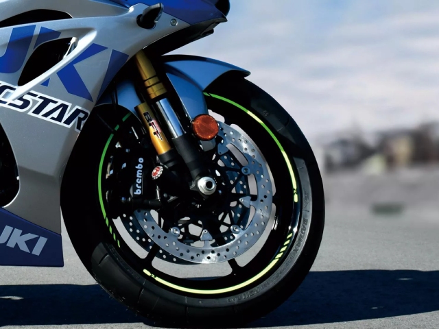 The GSX-R1000R comes standard with Brembo radial-mounted, monobloc front brake calipers, braided hoses and Nissin master cylinder.